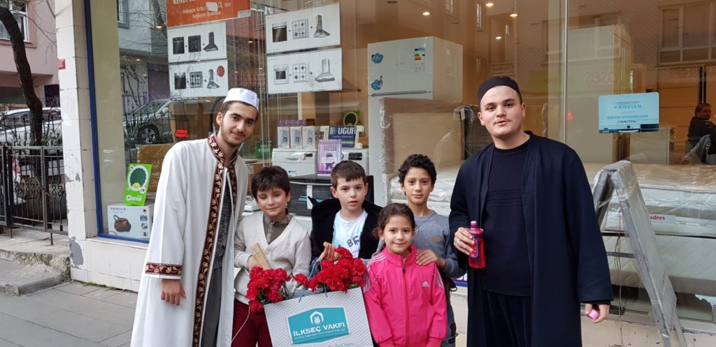 İLKSEÇ Vakfı İlim ve Kültür Eğitim Merkezi İLKEM talebelerimiz Reğâib Kandili münasebetiyle çevre esnafı ziyaret etti. Bayrampaşa esnafı ile kandilleşen talebelerimiz, takdim ettikleri güllerle esnafımızın hem dualarını hem de gönüllerini aldı. Rabbimiz Te-âlâ, cümlemizi üç ayları layıkıyla idrak eden ve maddi/manevi kazançlarla merzûk olan kullarından eylesin. Reğâib Kandilimiz mübarek olsun.